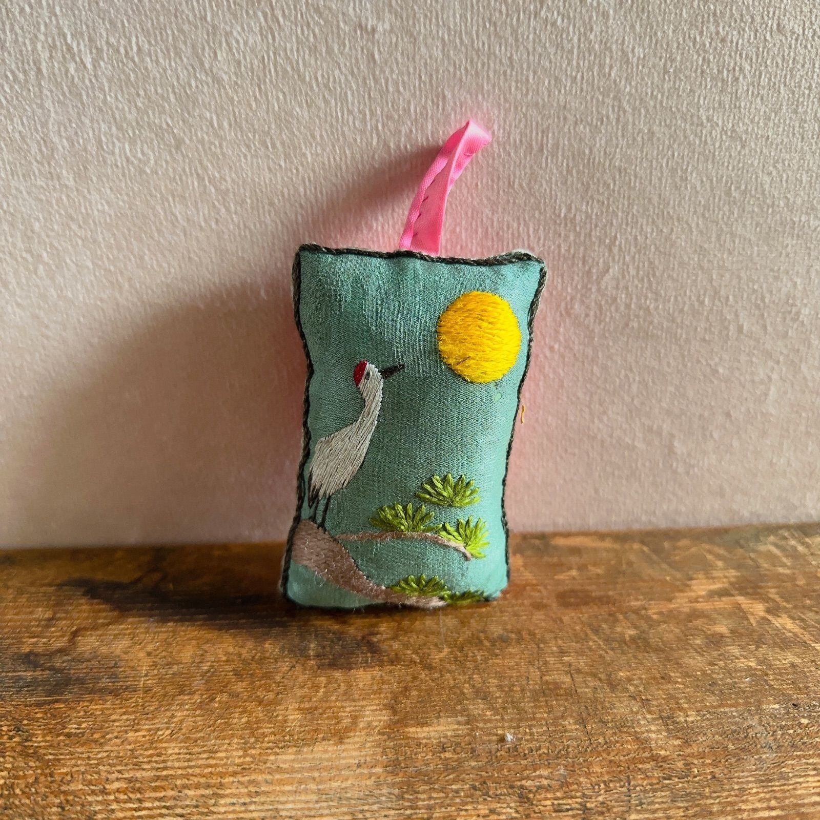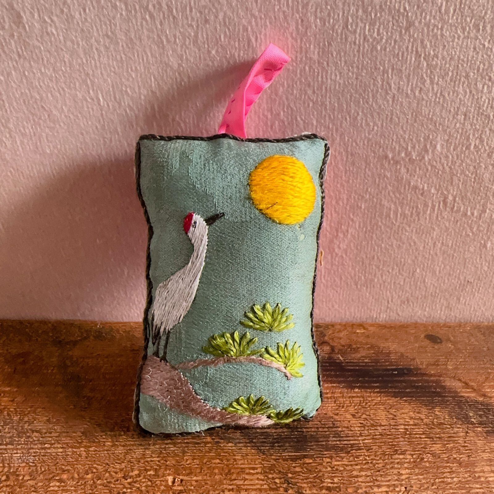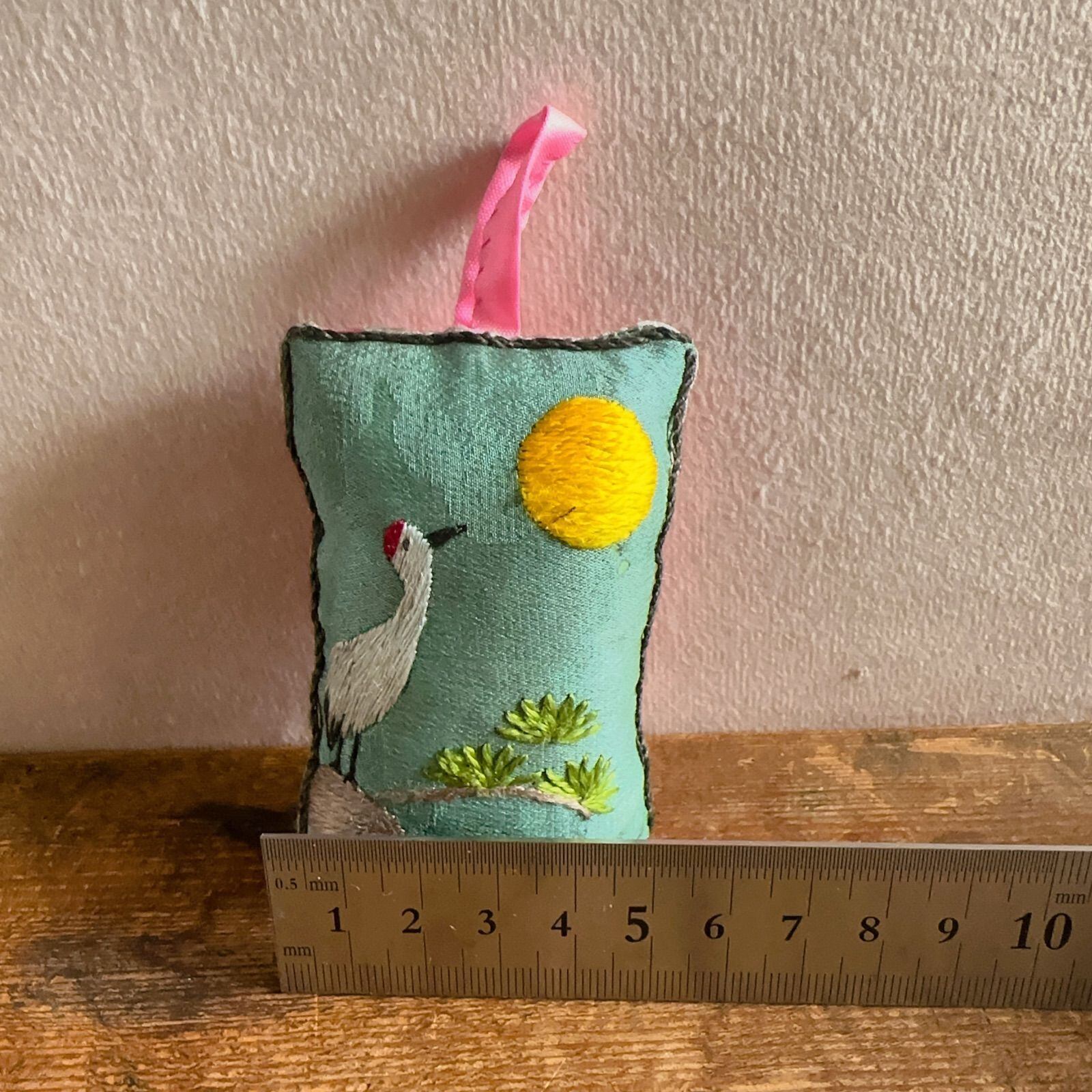 店主さんが手縫いで作ったそうで鶴と月の刺繍がなんとも可愛らしいです。