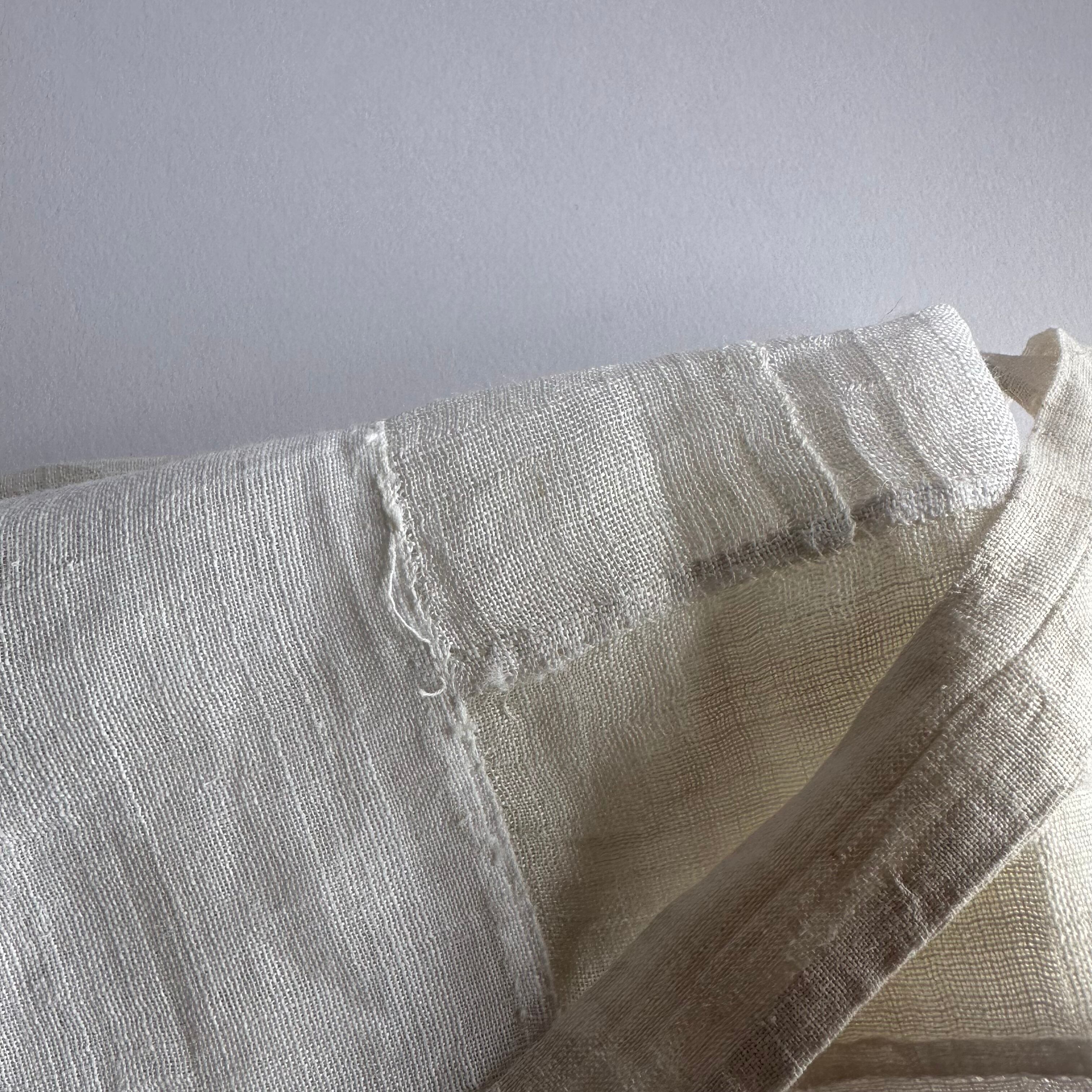 年月を経た傷や小さな穴・擦れ・ほつれ・染みの箇所は人工的には真似できない風合いであり、この布の魅力としてご理解ください。