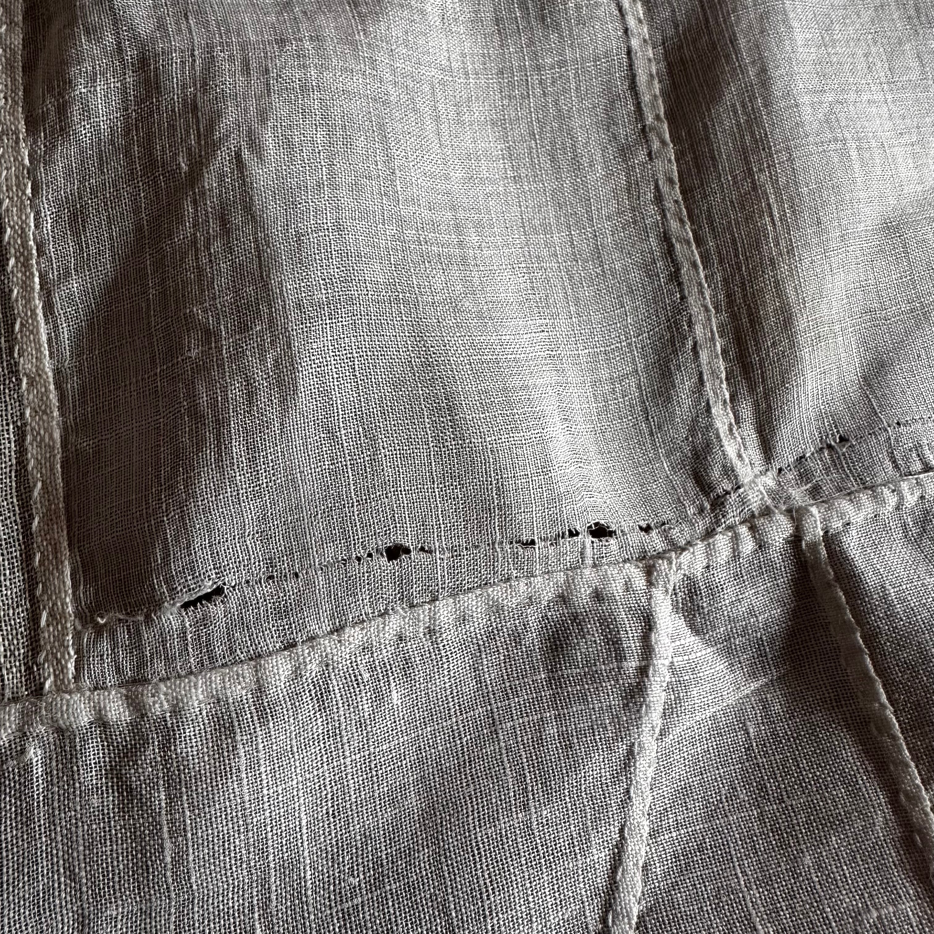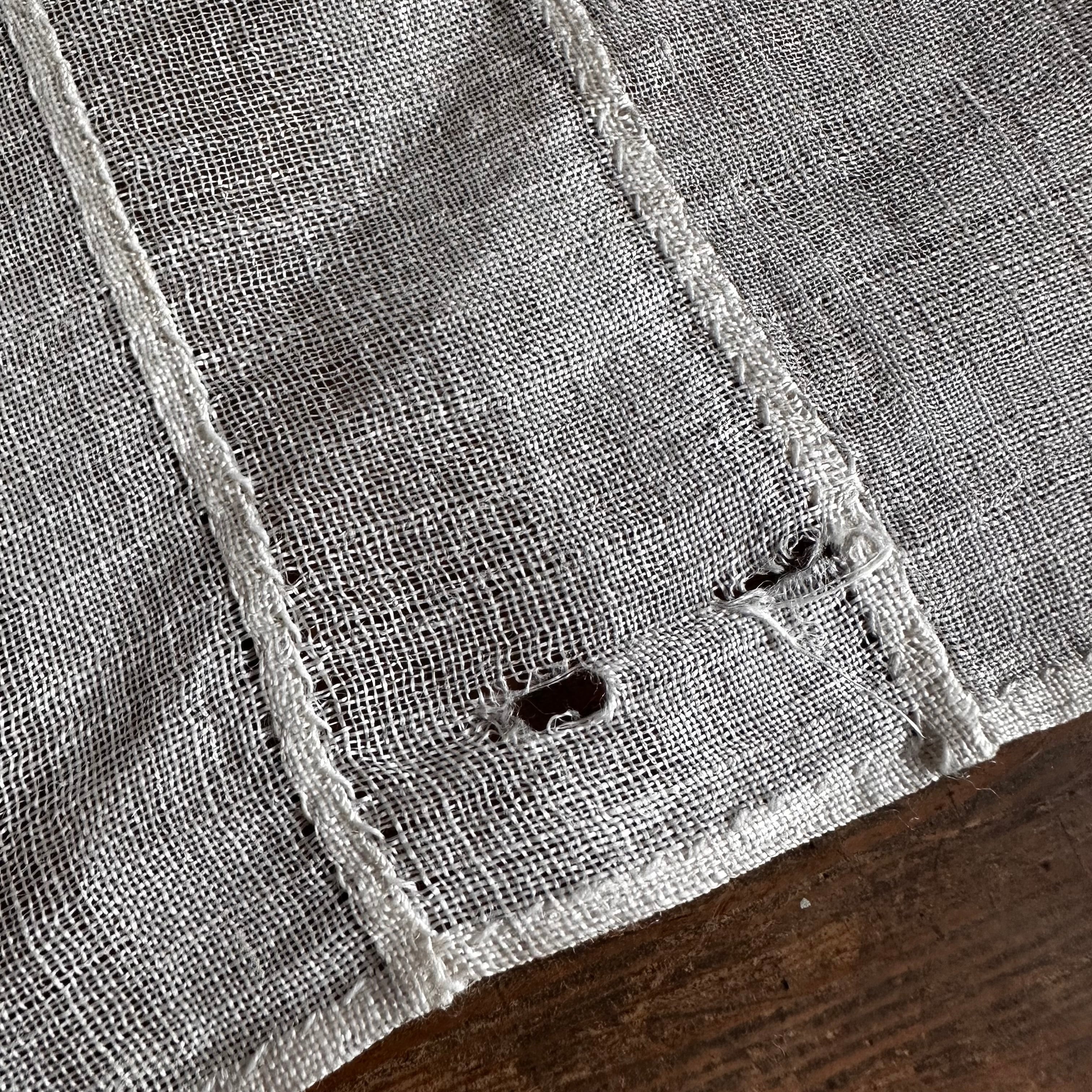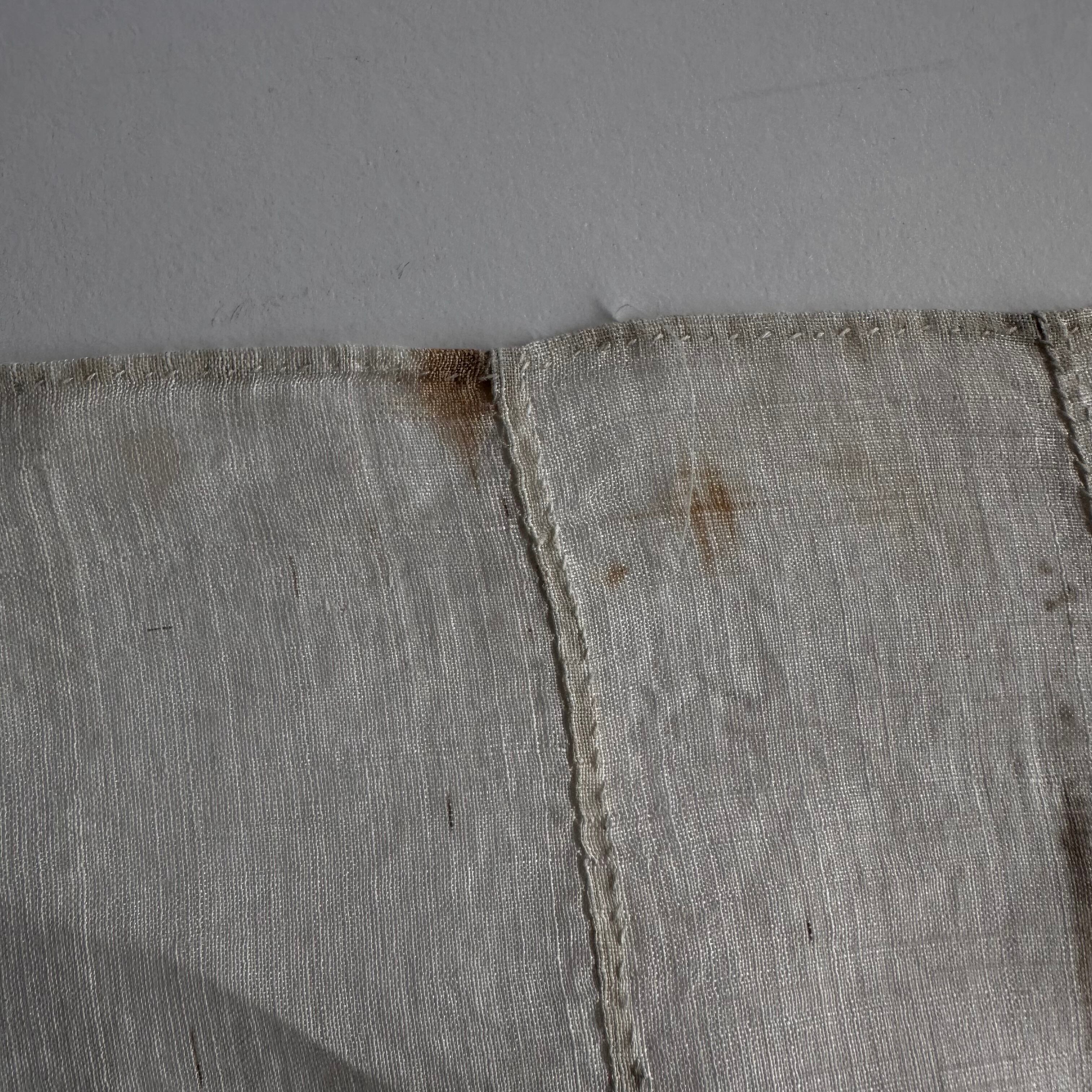 年月を経た傷や小さな穴・擦れ・ほつれ・染みの箇所は人工的には真似できない風合いであり、この布の魅力としてご理解ください。